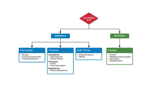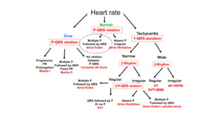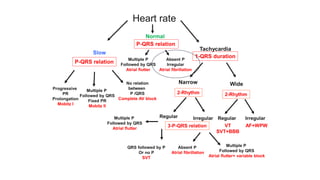 This document provides an overview of how to read an electrocardiogram (ECG). It describes the basic anatomy and electrical conduction system of the heart and how the ECG machine records and displays the heart's electrical activity. It then outlines a systematic approach for interpreting an ECG, including evaluating the rhythm, rate, axes, voltages, waves, segments, intervals, and any signs of ischemia, injury, or arrhythmia. Localization of abnormalities is also addressed. Examples are provided throughout to illustrate various normal and pathological ECG patterns.