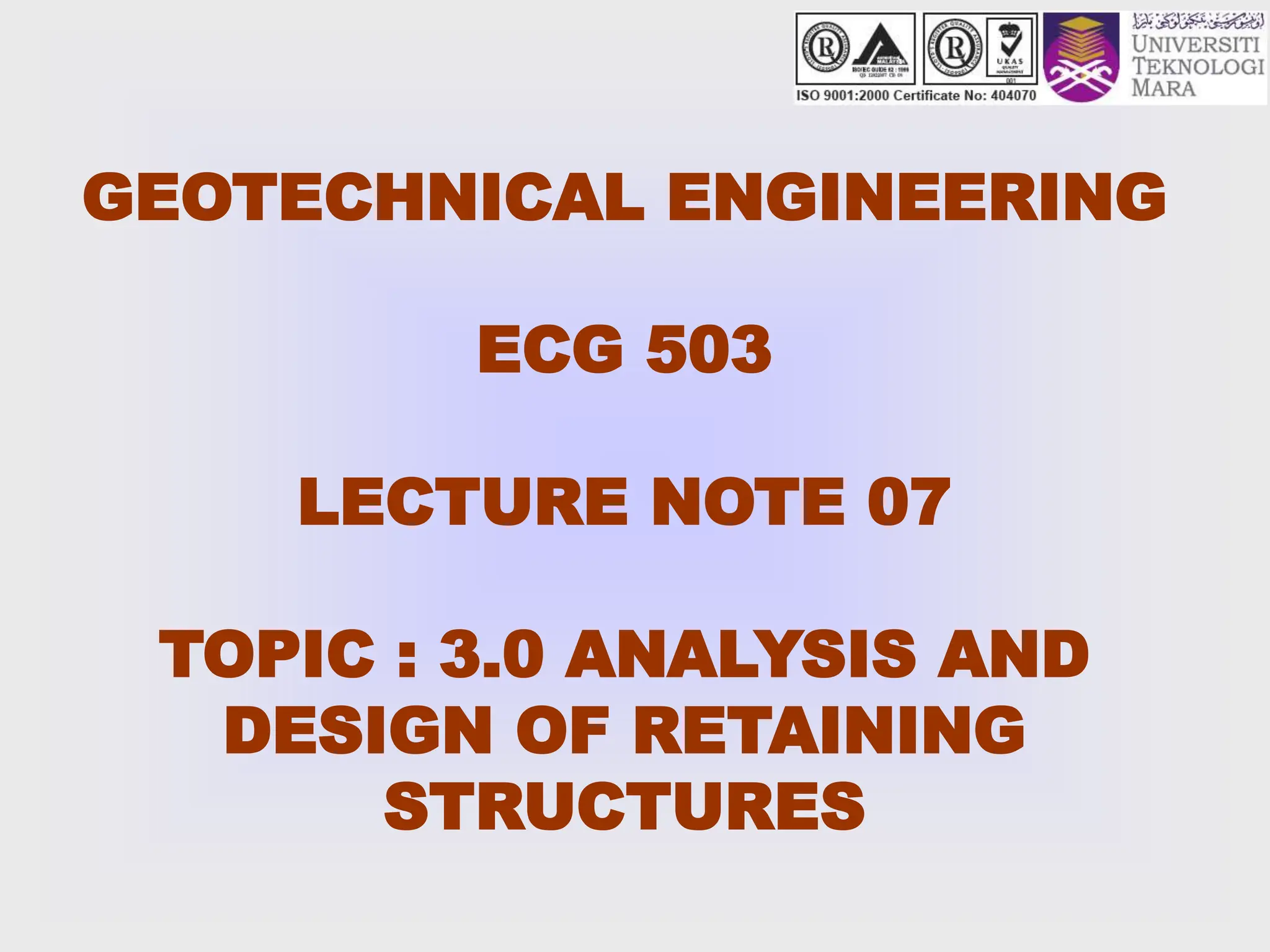 - It discusses different types of retaining structures including gravity walls, embedded walls, and reinforced/anchored earth walls. Common examples like sheet pile walls, cantilever walls, and reinforced earth walls are mentioned.