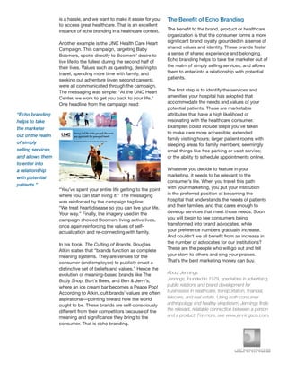 Echo branding in healthcare focuses on aligning brand values with consumer priorities, creating meaningful connections with products and services. This approach encourages patients to choose healthcare options that reflect their identities and aspirations, fostering loyalty and advocacy. Effective marketing strategies emphasize consumer relevance and personal experiences, ultimately reinforcing the relationship between healthcare institutions and their patients.