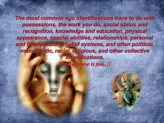 1) The document discusses letting go of ego identifications and being present in the current moment. 2) It notes that negative experiences often contain deep lessons, and to focus more on how you do things rather than desired results. 3) True freedom comes from nonresistance, nonjudgement, and nonattachment, and finding your essence beyond short-lived senses of self.