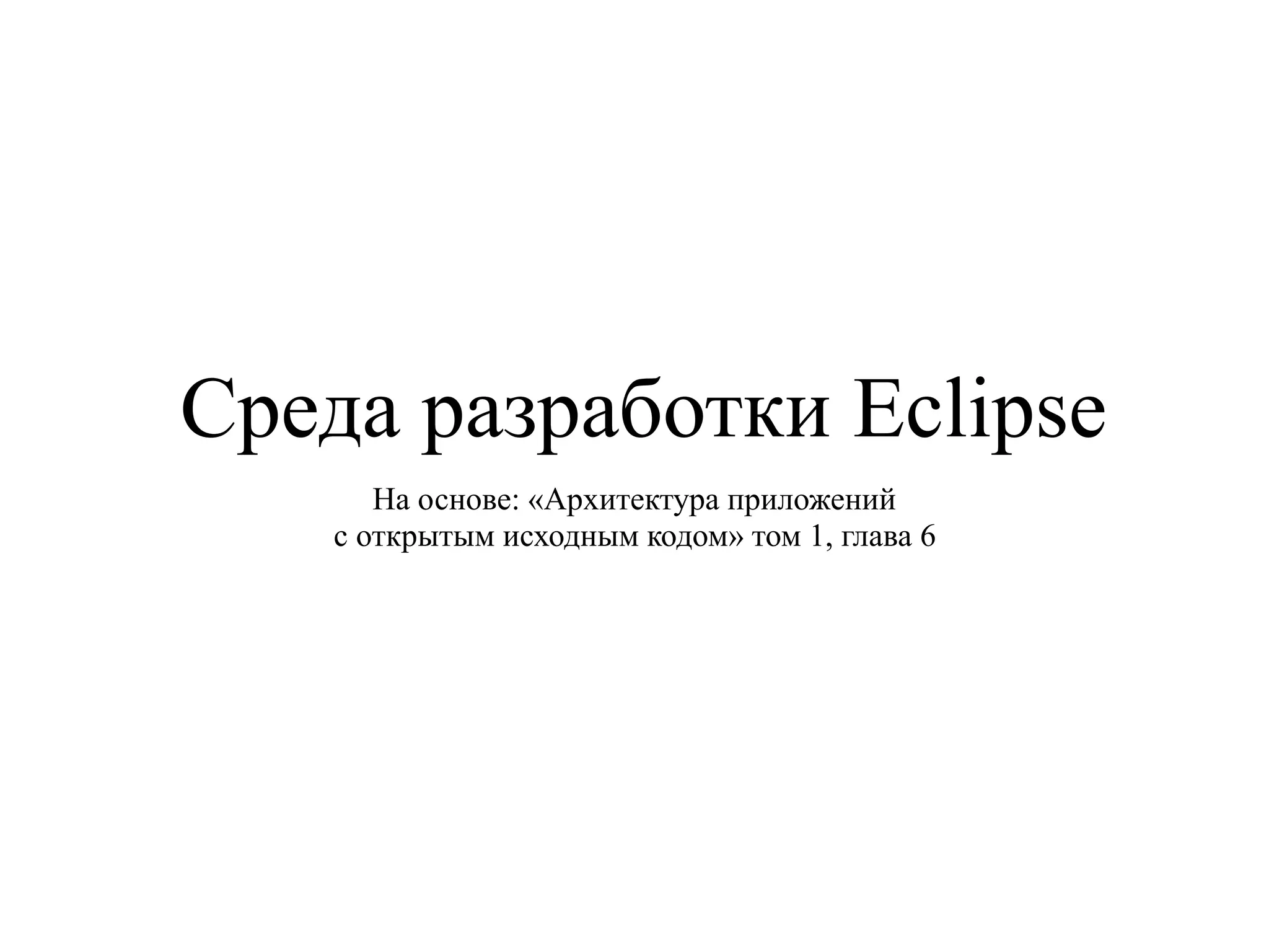 Документ описывает историю и архитектуру среды разработки Eclipse, начиная с её создания в 2001 году и формирования Eclipse Foundation в 2004 году. Он подчеркивает важность плагинной архитектуры, позволяющей разработчикам создавать и интегрировать различные инструменты, а также рассказывает о компонентах платформы, таких как SWT и JFace. Кроме того, упоминается о многоплатформенной поддержке Eclipse и развитии сообщества из более чем 170 компаний и почти 1000 участников.