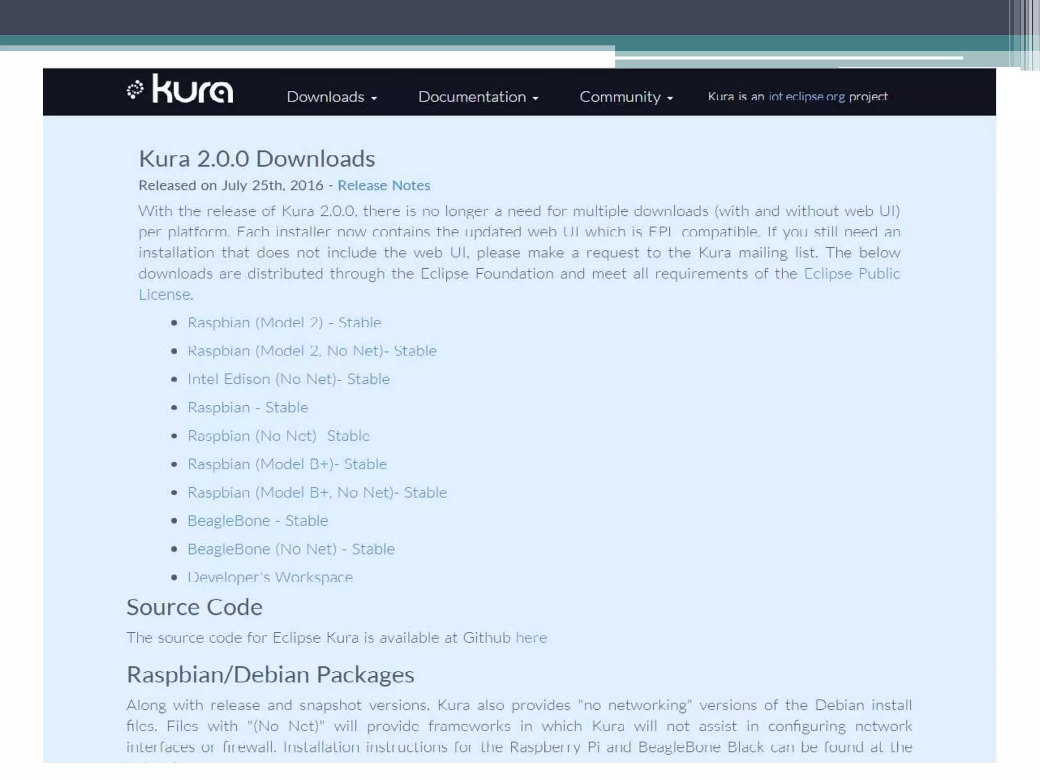 This document discusses using Eclipse Kura and related Eclipse projects like Apache Camel, Eclipse Paho, and Apache ActiveMQ on an Intel Edison board. It provides instructions for installing Kura, connecting it to Eclipse, deploying Camel routes, integrating with Paho and ActiveMQ, and developing custom Camel components. Key aspects covered include Kura's OSGI-based architecture, using it for IoT gateways, and configuring networking and logging.