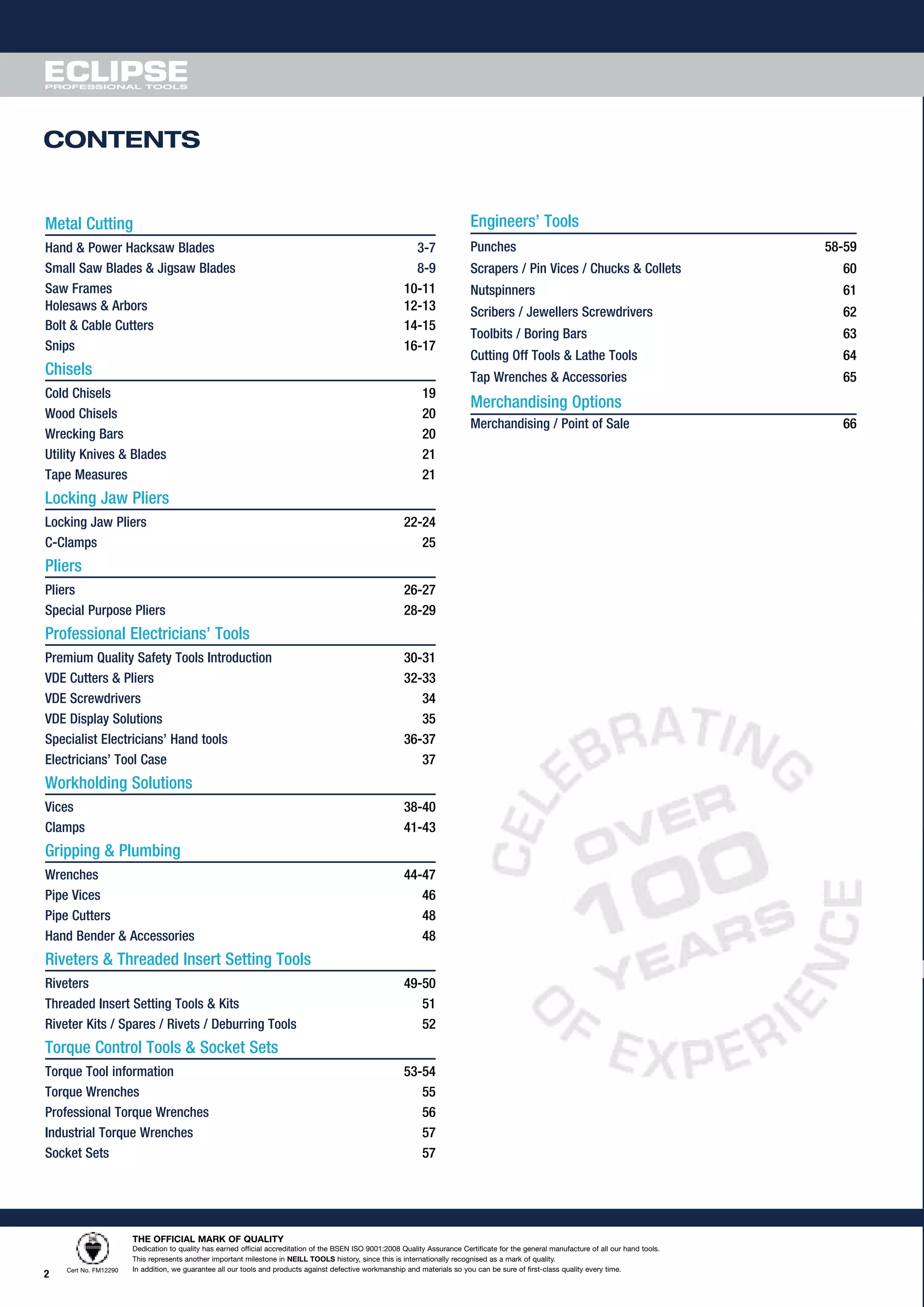 The document emphasizes NEILL TOOLS' dedication to quality, with ISO 9001 certification, and guarantees their tools against defects.