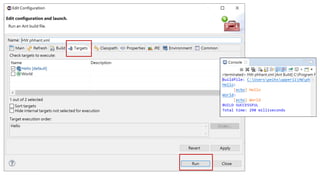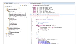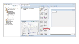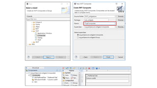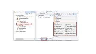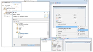 The document provides instructions for using decorations with controls in SWT/JFace applications. It discusses how the ControlDecoration class allows placing image decorations on controls to provide additional information. Creating a decoration involves adding a ControlDecoration to a Text field in the design view and then adding code in the source view to initialize the decoration. The decoration can display an image and tooltip text when the user hovers over it. Developers must leave space in the UI layout for decorations to be visible.