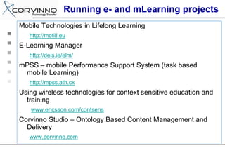 This document outlines steps towards building an ontology-based learning environment. It begins by defining an ontology as a way to capture shared knowledge that can be reused across applications and groups. It then presents an ontology model that maps educational concepts like curriculum development, learning technology selection, and competency mapping. The document describes how an ontology could enable adaptive testing, context-based learning, and human resources processes like recruitment and selection. Overall, the document argues that an ontology-based approach could provide a formal way to structure and share educational knowledge.