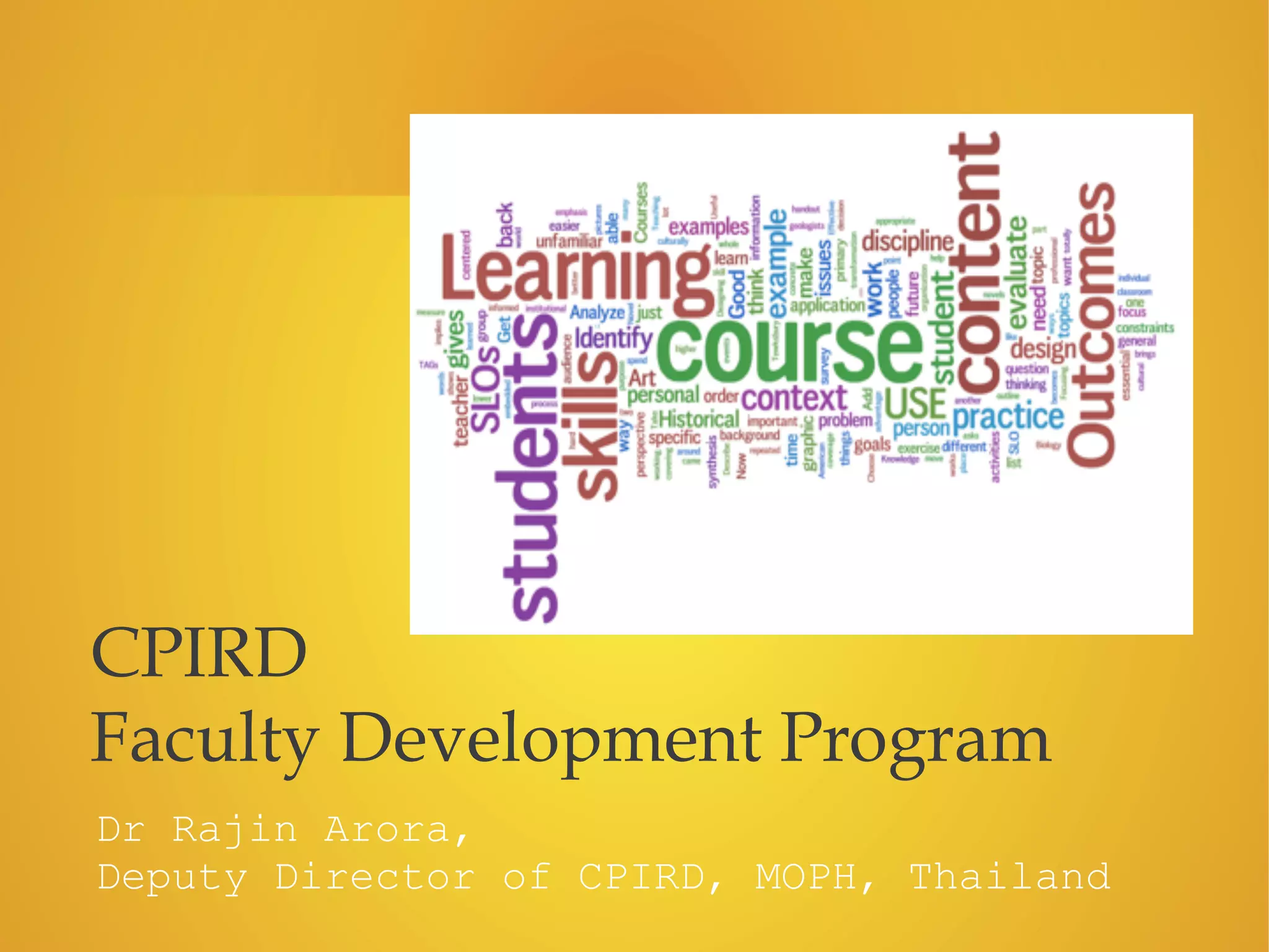 The document discusses the Faculty Development Program (FDP) run by the Center for Professional and Institutional Development at the Ministry of Public Health in Thailand. The FDP aims to develop competencies in medical teachers in four areas - medical knowledge, research skills, educational knowledge, and generic skills. It outlines the expected outcomes of the program and the four phases of faculty development. It also provides details about past programs conducted since 1995 and future plans to focus on specialty clinical training, fellowships, and research networks through collaborations.