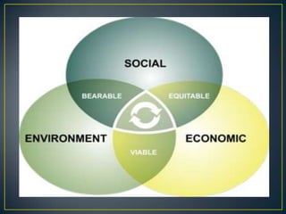 The document discusses the concept of eco-green cities, focusing on their importance and methods for achieving sustainability through architecture, transportation, and urban planning. It outlines various strategies for minimizing environmental impact, including the use of renewable energy sources, urban farming, and improved public transportation, while also highlighting successful examples from around the world. The conclusion emphasizes the need for sustainable urban development to address contemporary challenges and ensure a viable future for generations to come.