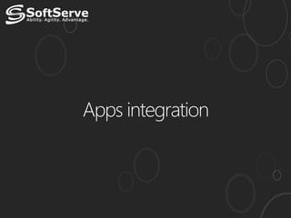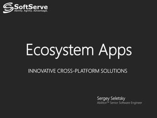 The document discusses ecosystem apps and cross-platform solutions. It defines an ecosystem as the combination of devices, operating systems, and app stores. It then covers challenges like developing native apps for each platform. It evaluates cross-platform frameworks like Xamarin, Titanium, and PhoneGap that allow developing apps using HTML5 that run across platforms. Finally, it discusses integrating apps across platforms and distributing them through app stores.