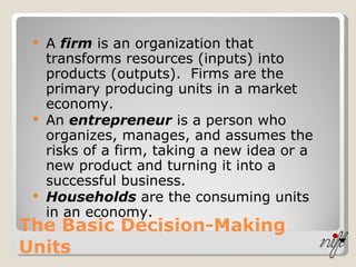 1) Firms produce goods and services while households consume them in the circular flow of economic activity.