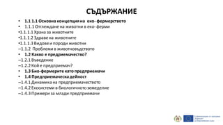 • 1.1.1 Отглеждане на животни в еко- ферми