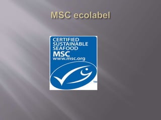 This document discusses various eco-labelling schemes for fisheries and seafood products. It outlines several international eco-labelling programs like Friend of the Sea, Marine Stewardship Council, and Marine Aquarium Council certification. It also discusses the criteria and standards of these different labels, as well as examples of Indian companies that are eco-label certified. Overall, the document analyzes eco-labelling as a market-based tool to promote sustainable fisheries management and provide economic incentives for environmental stewardship.