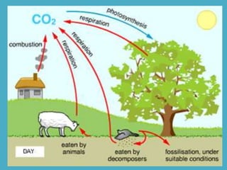 Ecology is the study of interactions between organisms and their environment. The biosphere is the global ecosystem, encompassing all living things found in air, land, and water on Earth. Ecologists study how both biotic factors (living things) and abiotic factors (non-living things) influence organisms and populations within various levels of organization, from individuals to ecosystems. Energy and matter flow through ecosystems via food chains and food webs, with only about 10% of available energy being transferred between trophic levels. Key biogeochemical cycles such as the water, carbon, nitrogen, and phosphorus cycles recycle critical elements and compounds.