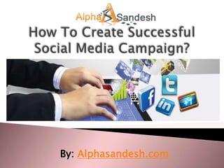 The document discusses tips for running a successful social media marketing campaign. It recommends setting goals, focusing on key metrics, selecting appropriate social media channels, launching the campaign using email templates that share content on social media, creating sample social media posts, and evaluating and repeating the campaign. The goal is to use social media and email together to communicate with customers on a personal level and drive traffic to influence more people in a business's social networks.