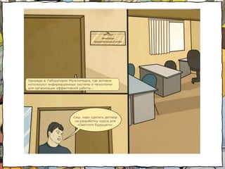 Документ описывает Юлию Балинову как историка и педагога-дизайнера, работающего в сфере создания электронных курсов. В нем рассматриваются различные виды курсов в академическом, государственном и корпоративном секторах, включая особенности подачи и применения мультимедиа, таких как комиксы и интерактивные элементы. Основное внимание уделено созданию engaging курсов с акцентом на яркую подачу информации и использование humor.