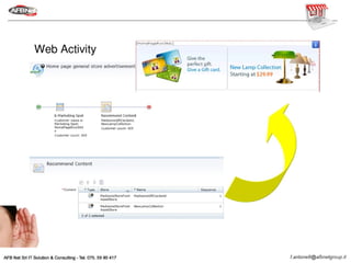 Il documento discute l'evoluzione dell'ecommerce, introducendo Ecommerce 3.0 e modalità di marketing personalizzato attraverso sistemi automatizzati. Viene descritta una soluzione integrata per gestire il dialogo con i clienti, sfruttando dati come comportamenti di acquisto e interazioni sui canali. Inoltre, si evidenziano le caratteristiche principali delle piattaforme ecommerce moderne, incluse funzionalità come la registrazione utente, la ricerca avanzata e strategie di vendita b2b e b2c.