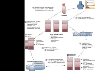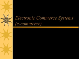 Electronic commerce encompasses the entire online process of developing, marketing, selling, delivering, servicing, and paying for products and services. It occurs through various models including business-to-consumer, business-to-business, and consumer-to-consumer. Successful e-commerce requires integrated customer-focused processes, secure transactions, interactive catalogs and ordering, and online customer support.