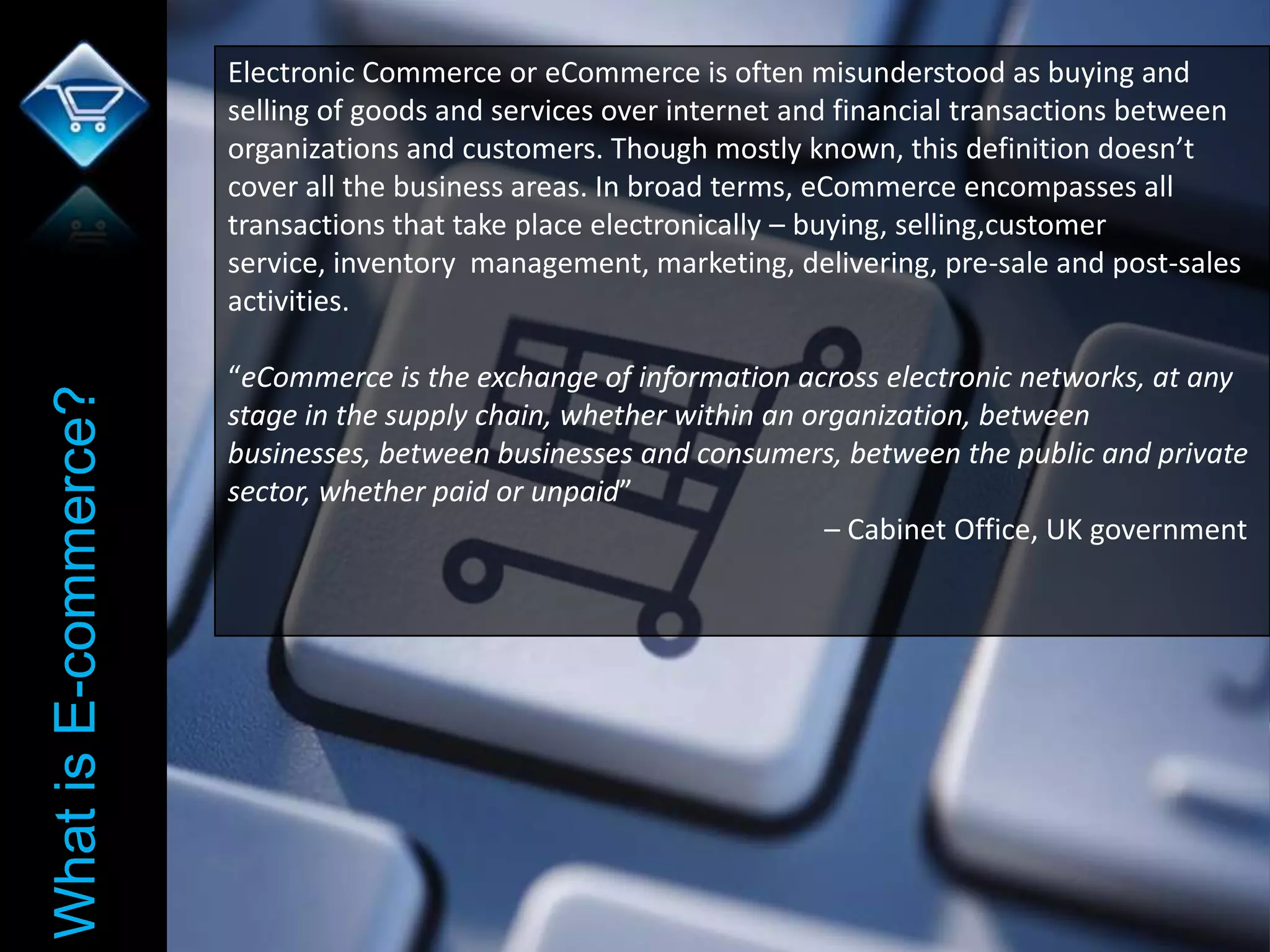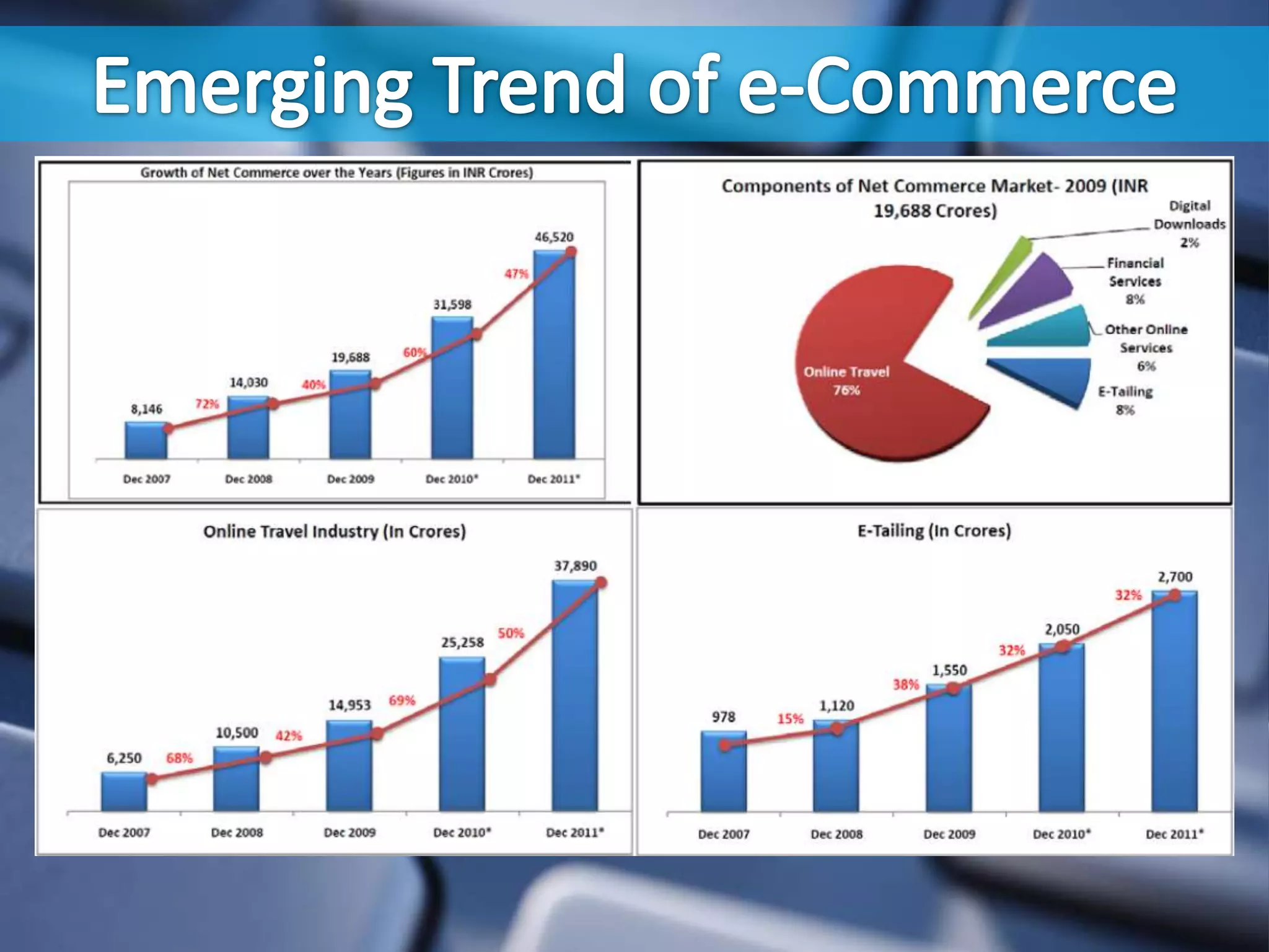 E-commerce encompasses a broad range of electronic transactions including buying, selling, customer service, and inventory management beyond just online shopping. The document discusses the evolution and perspectives of e-commerce, its legal and economic context in India, and the emerging demographic trends that influence consumption patterns. Additionally, it highlights the challenges and advantages for small to medium enterprises in developing countries, emphasizing the importance of technology and awareness for growth in this sector.