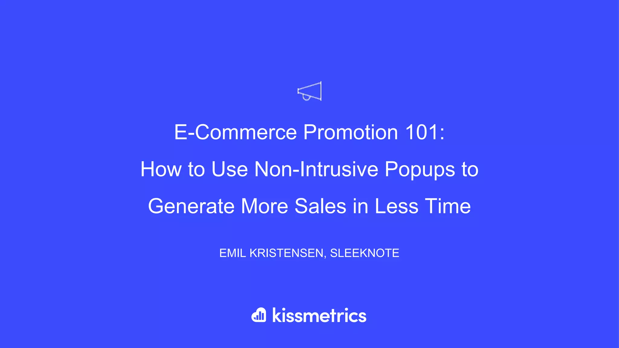 The Kissmetrics webinar titled 'E-commerce Promotion 101' focuses on using non-intrusive popups to boost online sales, featuring insights from experts Emil Kristensen and Thue Madsen. The session covers various strategies such as personalizing popups, using them as guides, promoting products, and collecting visitor feedback. Key takeaways include the importance of A/B testing to optimize popups for higher conversion rates while adhering to best practices.