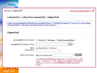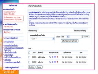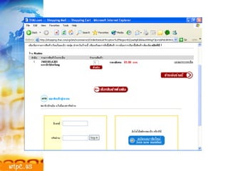 ระบบ e-Commerceระบบหลังร้าน ระบบจัดการของคงคลัง ระบบสั่งซื้อ ระบบบัญชี F I R E W A L L Computer system Computer and Browser Internet ผู้ผลิตหรือผู้ที่เกี่ยวข้อง ระบบหน้าร้าน Web catalog Webconnect server F I R E W A L L Web Commerce server ผู้ซื้อ ธนาคาร Payment Gateway
