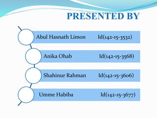This document provides an overview of e-commerce, including definitions, types of e-commerce (B2B, B2C, C2C, B2G, G2C, G2B), objectives, outcomes, and limitations. E-commerce is defined as purchasing, selling, and exchanging goods and services over computer networks and the internet. The main types are business-to-business, business-to-consumer, and consumer-to-consumer. The objectives of e-commerce include making online buying easy, providing reliability and security, and giving customers a 360-degree view of products. Potential outcomes are easier and faster access to information, lower costs and more global market access. The document also discusses