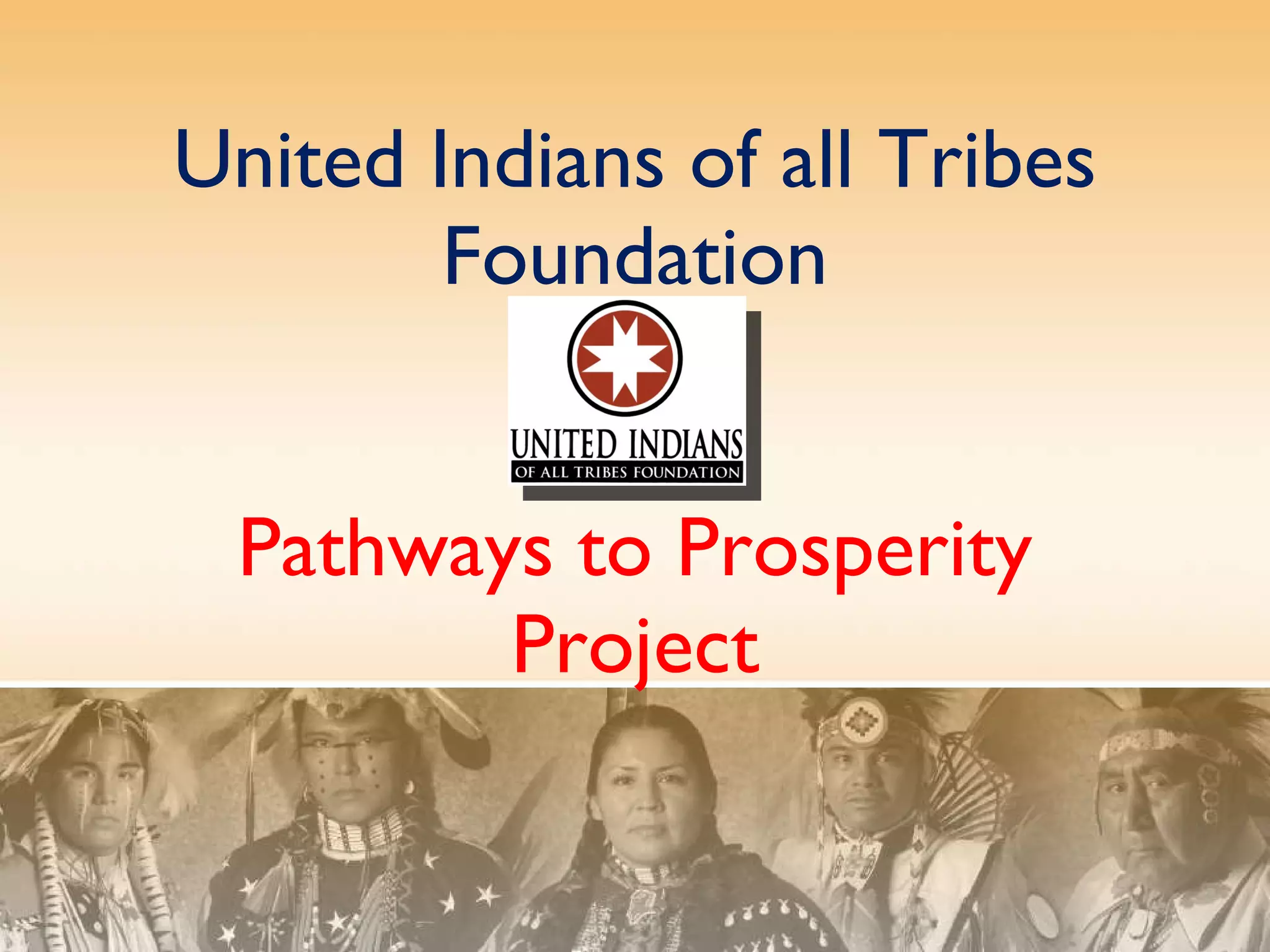 The United Indians of all Tribes Foundation Pathways to Prosperity Project aims to address high levels of poverty, homelessness, unemployment, and low education rates among Native Americans through community economic development. The project provides business consulting, training, and access to capital and financing to help build individual and community capacity for economic success. Its goals are to create job and business ownership opportunities, assist small business growth, and develop asset building and economic partnerships between tribes and corporations. The project aims to reduce Native American poverty by helping to create indigenous wealth.