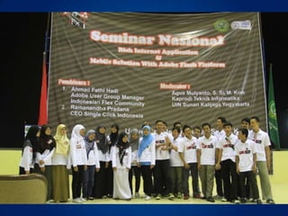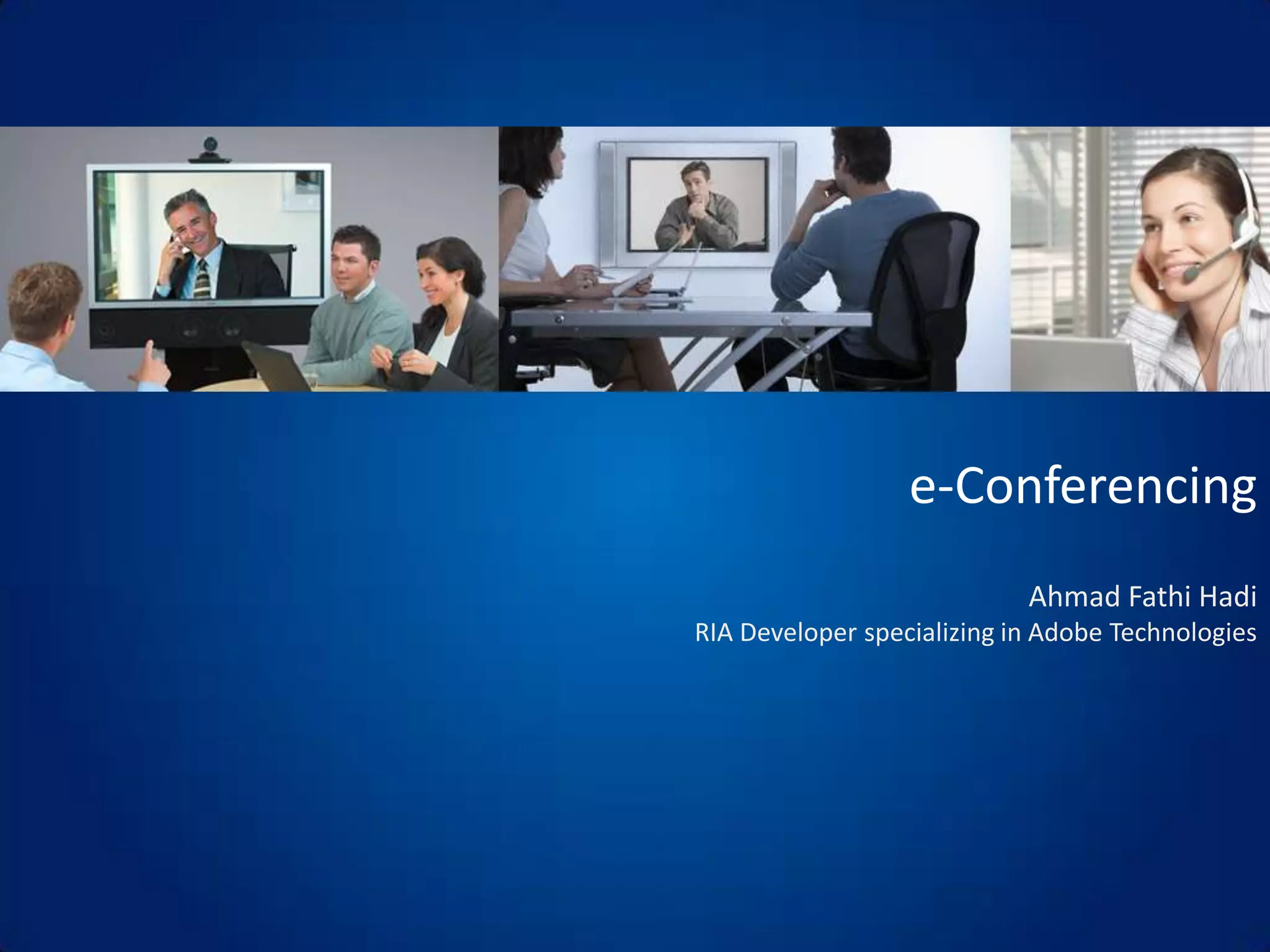 The document discusses e-conferencing, highlighting its significance in utilizing internet technology for conducting conferences while allowing for various interactive features. It compares video conferencing and web conferencing, outlines the benefits such as reduced travel costs and increased productivity, and emphasizes the importance of a stable internet connection and preparation for successful sessions. The author, Ahmad Fathi Hadi, is an experienced developer specializing in Adobe technologies, involved in the development of such systems in Indonesia.