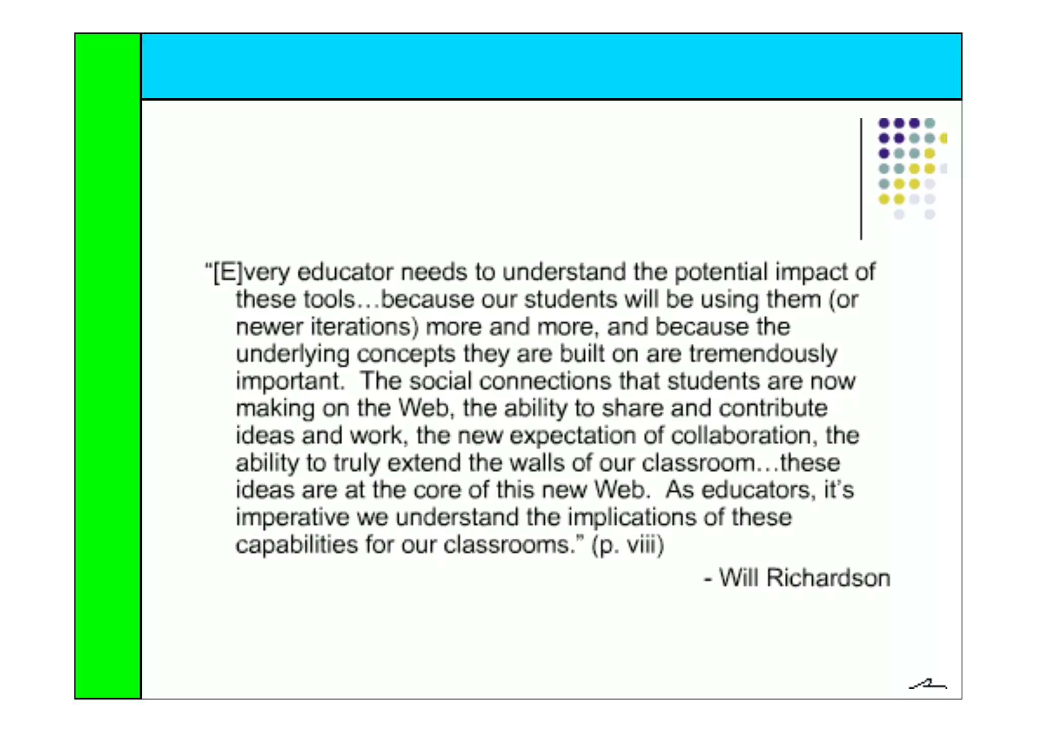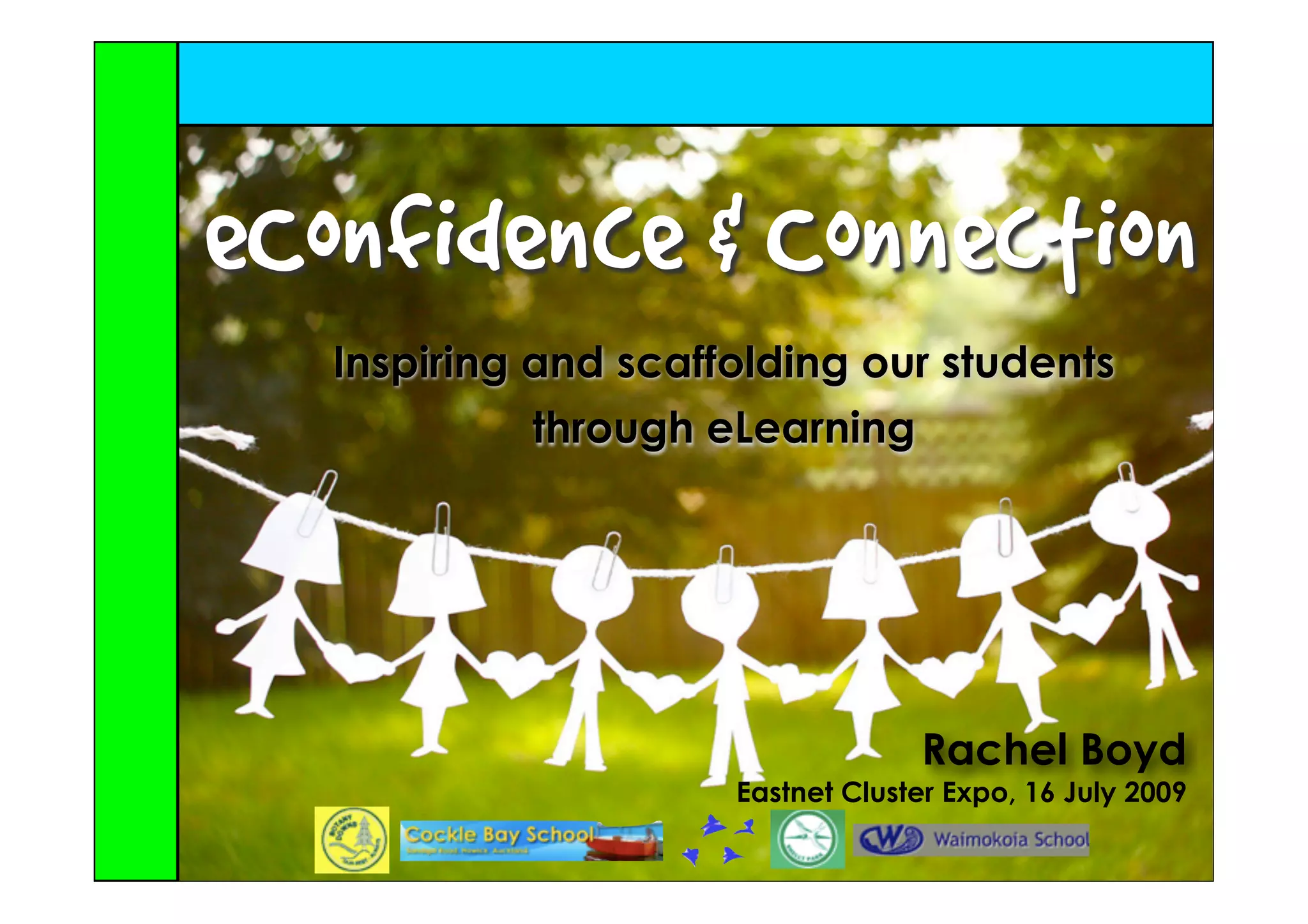 This document summarizes Rachel Boyd's presentation on using technology to inspire and support student learning. She discusses using tools like blogs, wikis, and Skype to connect students to the world and provide authentic audiences for their work. Boyd advocates using technology to open up new ways of learning rather than just supplementing traditional methods. She also stresses the importance of scaffolding learning with technology, promoting student ownership, and giving teaching practice a "shake up" by connecting classrooms to the world in new ways.