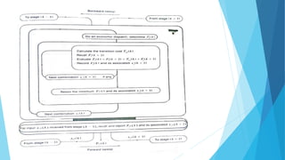 This document discusses unit commitment in power systems. Unit commitment aims to schedule generating units to meet forecasted load at minimum cost while maintaining reliability. It considers startup costs, operating costs, and shutdown costs over a daily load cycle. Dynamic programming is used to solve the unit commitment problem by evaluating combinations of generating units at each time interval and carrying minimum costs backward from the final interval to find the overall lowest-cost solution. The objective is to determine the optimal set of units to operate at each time period to supply predicted load economically.