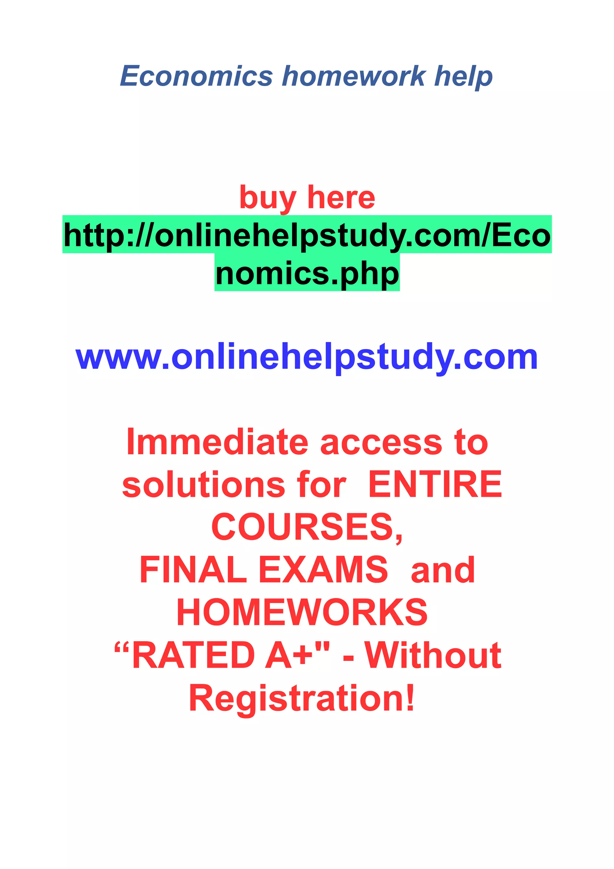 - The document provides information about economics homework help and solutions available for purchase online without requiring registration.