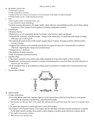 This document provides an overview of several influential early economists from the pre-classical era, including: