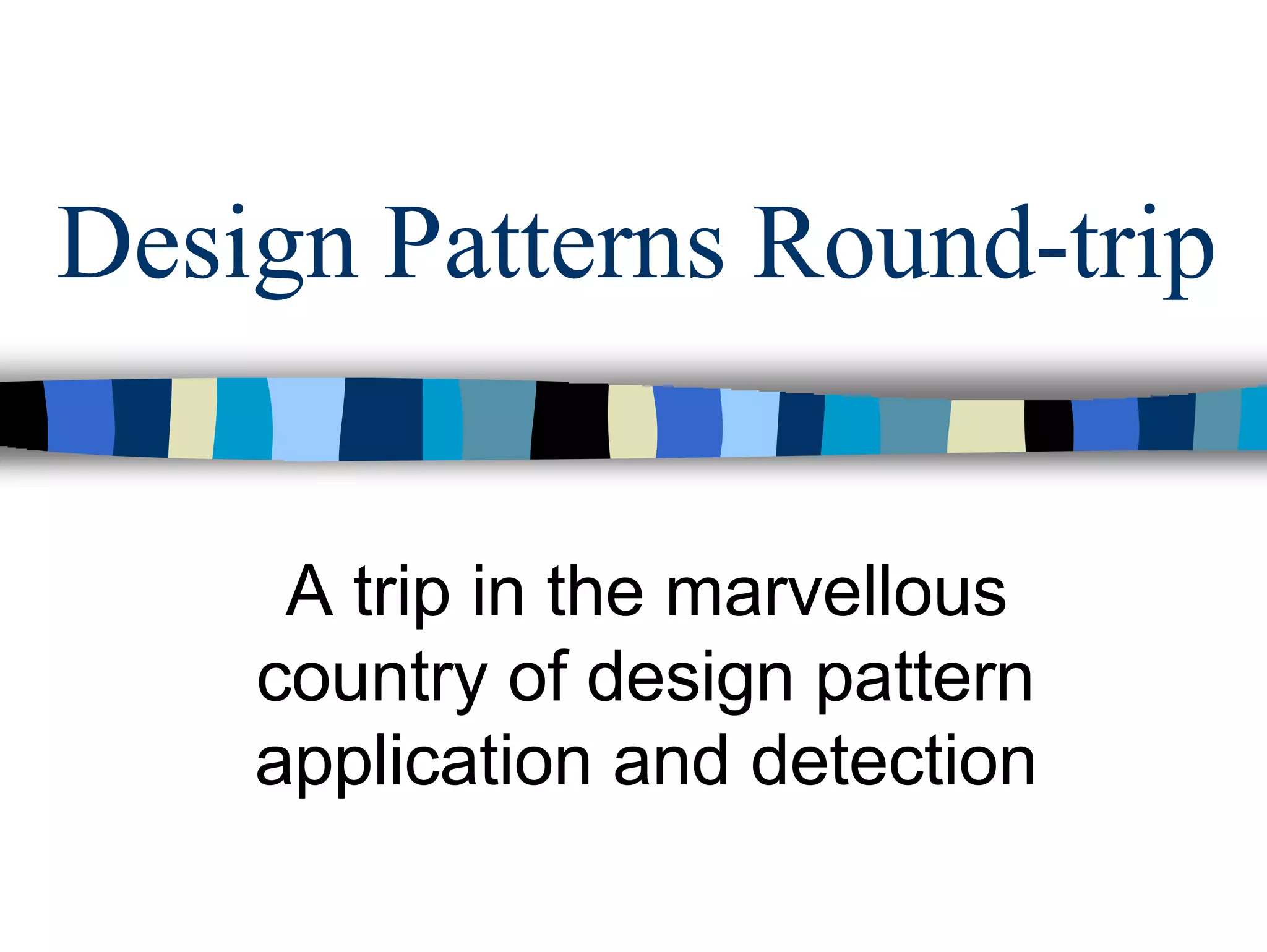 The document discusses research into automating the application and detection of design patterns through the development of tools called PatternsBox and Ptidej, which use a common meta-model to represent design patterns and apply patterns to code or detect patterns in existing code through constraint solving. The goal is to provide a round-trip engineering approach to using design patterns through these tools.