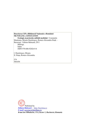 Documentul oferă un suport de curs pentru tehnicienii ecologi în domeniul ecologiei și protecției calității mediului, acoperind subiecte precum poluarea apei, aerului și solului, conservarea biodiversității și gestionarea deșeurilor. Este structurat în module care învață competențe tehnice și specializate pentru a aborda problemele de mediu contemporane. Scopul său este de a pregăti specialiștii necesari pentru a contribui la gestionarea sustenabilă a resurselor naturale și la protecția mediului.