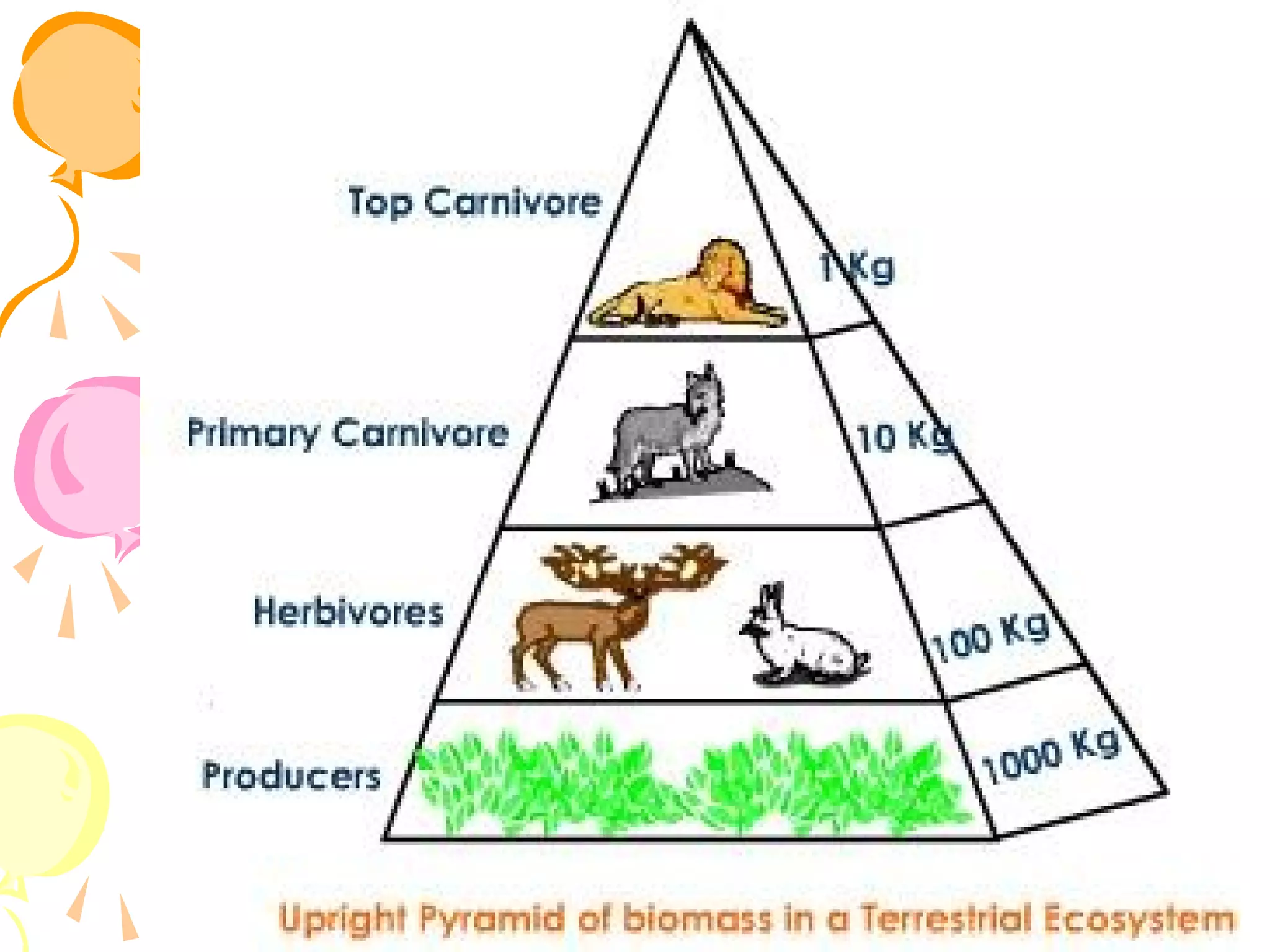 An ecosystem consists of all the living organisms (biotic factors) in an area as well as non-living components (abiotic factors) interacting together. Key abiotic components include climate, soil, sun, water and air. Key biotic components include producers, consumers, and decomposers. Energy enters the ecosystem primarily from the sun and passes through food chains and food webs as organisms consume, and are consumed by, others. Decomposers break down dead organic matter and cycle nutrients back into the soil.