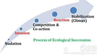 The document provides a comprehensive overview of ecology, defining it as the study of ecosystems comprising biotic and abiotic components. It discusses various concepts such as trophic structures, food chains, and ecological succession, highlighting the dynamic interactions within ecosystems and their importance in energy flow and nutrient cycling. Additionally, it explains types of ecological pyramids and the impact of ecological succession on community structure over time.