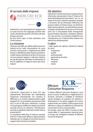 Il documento discute il modello operativo di category management per ottimizzare l'efficienza del sistema Italia nel settore dei beni di consumo, promuovendo la collaborazione tra produttori e distributori. Include una descrizione delle fasi del processo di gestione delle categorie e i principi chiave come la trasparenza, la qualità e l'orientamento al consumatore. Indica inoltre come l'associazione indicod-ecr rappresenta un punto di riferimento per le imprese nel promuovere l'efficienza nei rapporti con i consumatori.