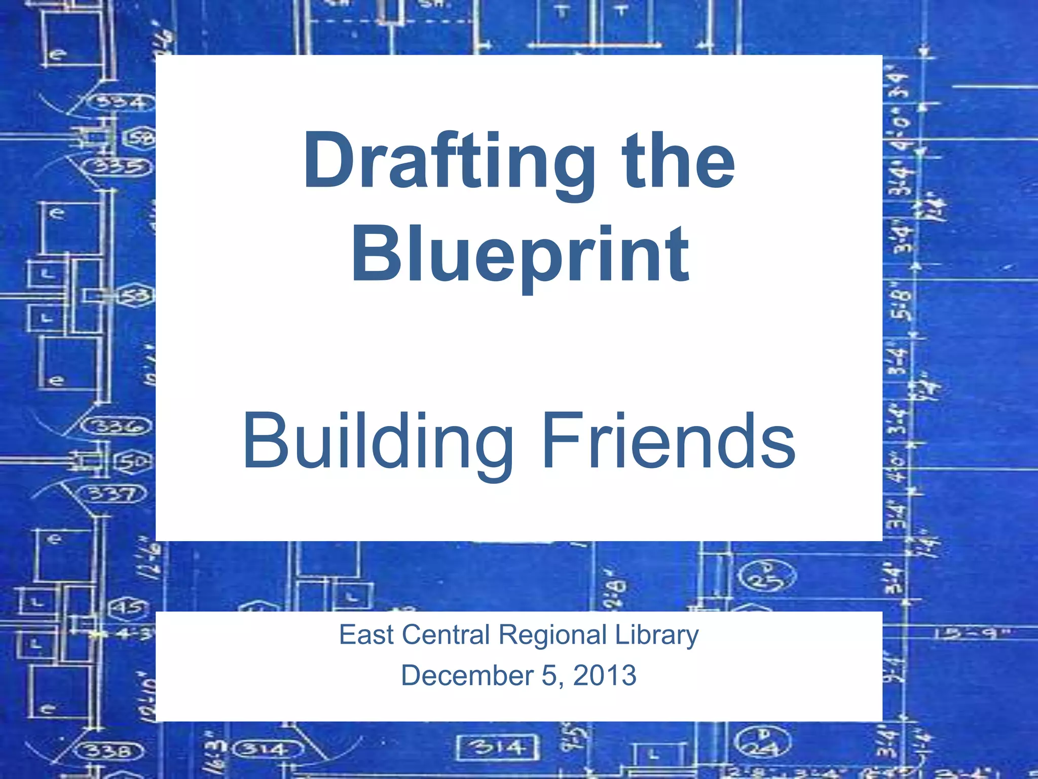This document provides guidance on building a strong Friends group to support the local library. It begins with an overview of the different roles Friends can play, including advocacy, fundraising, public relations, recruiting volunteers, and planning events and special projects. It then gives 10 "commandments" for a successful Friends group, such as having support from the library director and staff, clear roles for all partners, and regular evaluation and evolution. The second part focuses on finding new Friends members and provides tips on developing a recruitment plan, targeting different demographic groups, using various marketing strategies including social media, and following up with potential members. It also shares examples from other libraries of innovative ways to engage younger adults. The overall message is that Friends groups need to
