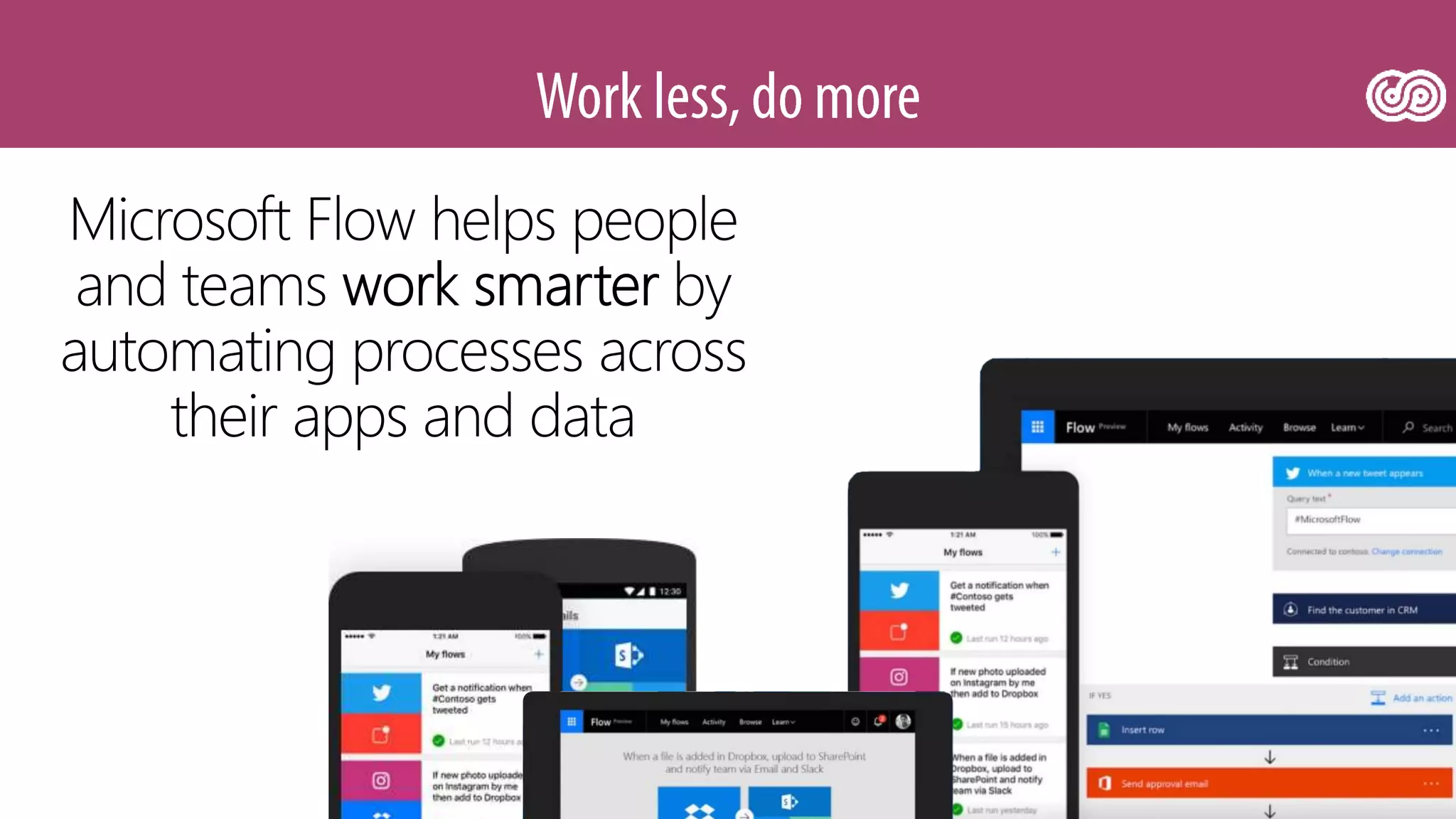 This document discusses Microsoft Flow and how it can be used for business automation. It introduces Ahmad Najjar, a Microsoft Flow expert, and outlines Flow's capabilities including scheduled, automated, and business process flows. Flow allows both power users and developers to automate tasks and integrate various Microsoft applications and services through connectors.