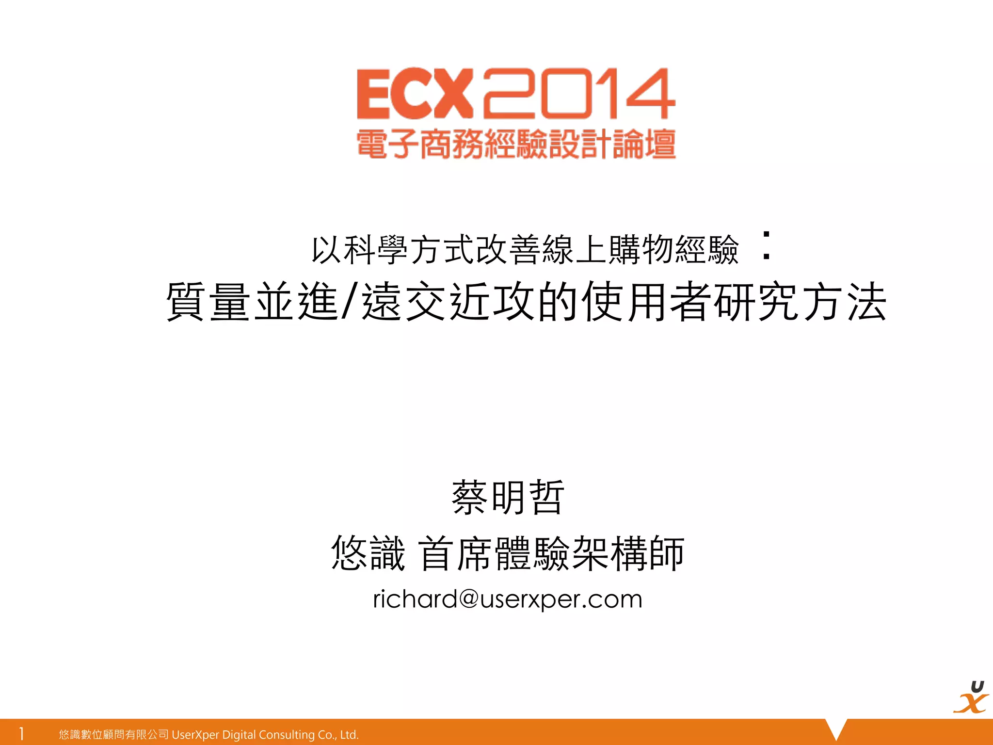 悠識數位顧問有限公司专注于通过用户研究改善线上购物体验,提供包括用户体验设计、服务和教育训练等多项服务。文档详细描述了电商平台的三阶段研究重点,以及各种用户研究方法,如机会探索和可用性测试,以确保网站设计满足用户需求和行为。公司旨在通过科学的方法提高电商经营的效益,推动品牌和服务的创新发展。