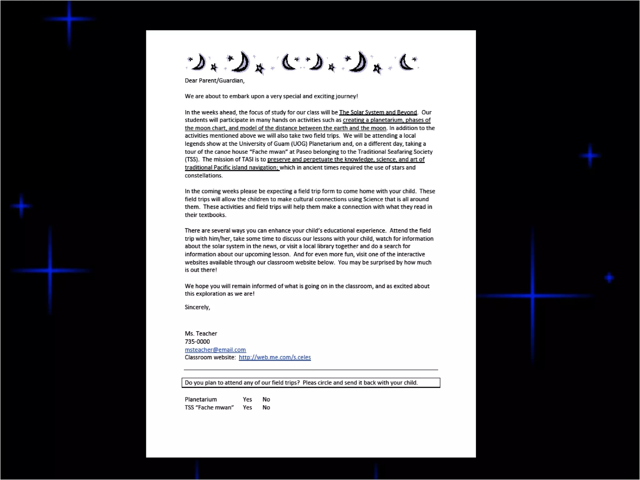 The document outlines the curriculum for a 5th grade science unit on the solar system and beyond. It includes objectives, alignment with national and local standards, strengths and weaknesses of textbooks and resources, assessment guidelines, and lesson plans integrating other subjects. Suggested activities include a field trip to a planetarium, constructing a moon phase chart by observing the moon over two weeks, and a group activity creating constellations in a homemade planetarium.