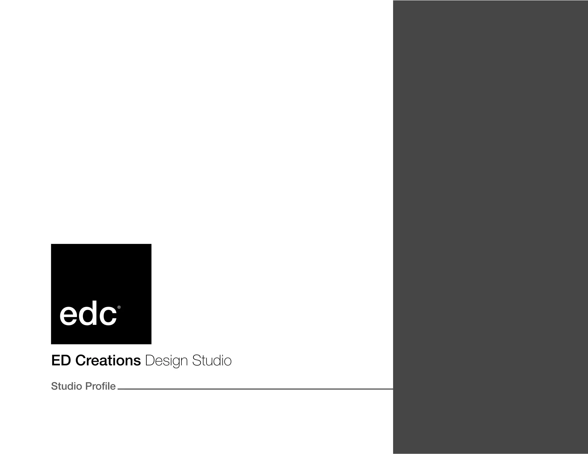 ED Creations Design Studio is an independent creative design agency based in Colombo, Sri Lanka. They bring together experience and skills to form a small, hardworking team that produces work that is interesting, beautiful, and effective. Their strengths include branding, print design, packaging, photography, and digital media. They aim to provide a consistent, effective service through intelligent design and full immersion in their clients' expertise. The studio was founded in 2009 by Eranga Wimalasuriya and focuses on developing creative solutions and building relationships with loyal clients.