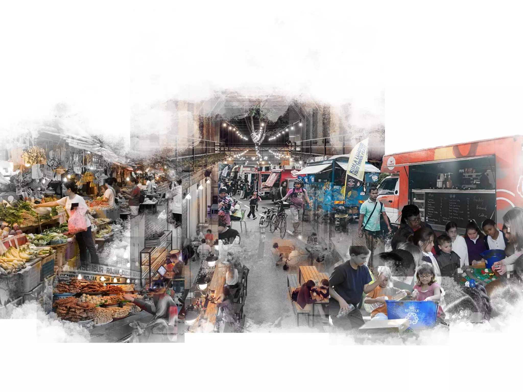 The document discusses the planning and design of several cultural centers and public spaces. It describes the Central Market in Abu Dhabi as having open-air markets and fusing Arabian heritage with modern design. It also discusses the Plaza Artesan Reina Victoria in Mexico City, which promotes handicrafts through connected public spaces and courtyards. Additionally, it summarizes the Songshen Cultural and Creative Park in Taipei, which aims to be a hub for creativity through various programs and public activities. Common principles across the projects include permeability of space through multiple entry points, landscaping with courtyards to foster social interaction, and using interstitial spaces for public activities.