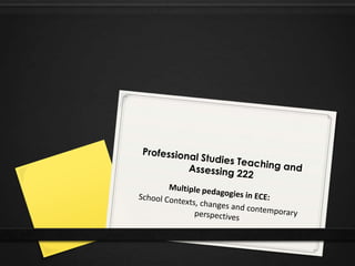 - Contemporary perspectives that influence practice include sociocultural theory, postmodernism, poststructuralism, the sociology of childhood, and the reconceptualist movement. Effective educators apply these theories through reflective practice, meaningful curriculum, partnerships, and documenting learning.