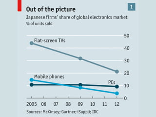 Japan has a strong science and technology sector, with 22 Nobel laureates in physics and chemistry. It relies heavily on nuclear power, with 55 reactors providing 34% of its electricity. While the automotive and electronics industries are highly developed, the country's K-12 education system has been slow to adopt technology, despite high expectations. There is a debate around balancing traditional moral education versus teaching skills needed for a globalized economy. Recent reforms aim to foster creativity and individuality in schools to better prepare students for competitive 21st century jobs.