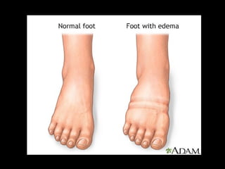 •Peripheral edema mainly occurs in the legs, feet, and ankles.