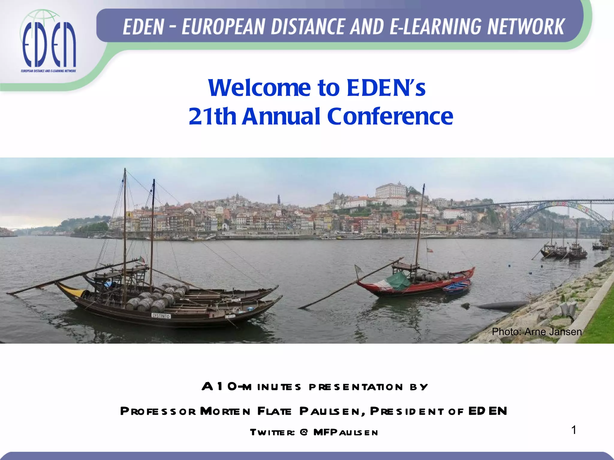 This document provides an overview and agenda for the 21st Annual Conference of the European Distance and E-Learning Network (EDEN).