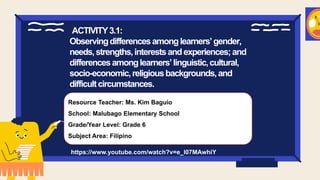 - Subjects like Mangyan Culture, IPKS, and agriculture teach students about their traditions, practices, and ways of living through practical hands-on activities.