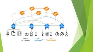 Edge computing is a distributed computing architecture that processes data closer to where it is generated, at the edge of the network, rather than sending all data to centralized cloud data centers for processing. It aims to provide quicker response times and reduce issues like hacking and random failures. Edge computing is geographically distributed, scalable, autonomous, and processes data locally with low latency for real-time interactions. While it has advantages like increased speed and reliability, it also has disadvantages like limited scalability and interoperability compared to cloud computing. Applications of edge computing include smart cities, manufacturing, healthcare, and augmented reality devices.