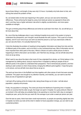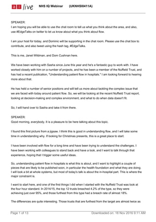 This document contains transcripts from a discussion on patient flow in hospitals. The speaker discusses several key points: