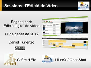 Sessions d'Edició deVídeo Segona part: Edició digital de vídeo 11 de gener de 2012 Daniel Turienzo Cefire d'Elx LliureX / OpenShot