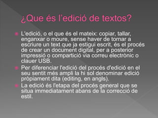 L'edició, oel que és el mateix: copiar, tallar,